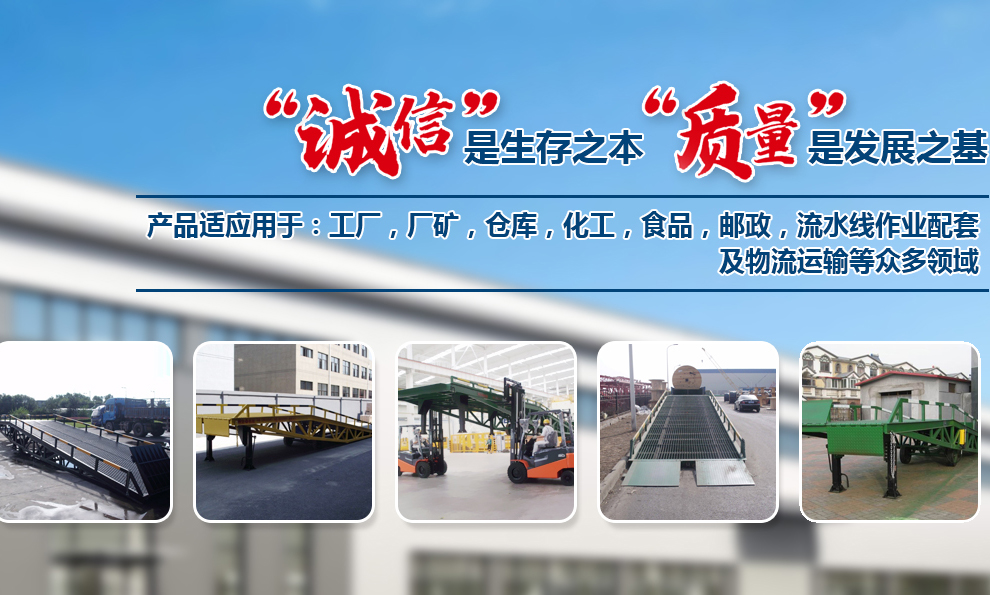 隨著國(guó)內(nèi)及國(guó)際市場(chǎng)需求的不斷擴(kuò)大,公司也在不斷引進(jìn)國(guó)內(nèi)外的先進(jìn)技術(shù)來充實(shí)自身。公司先后設(shè)計(jì)研發(fā)出了,大小型貨車配裝的:汽車液壓尾板,叉車裝卸貨用的:移動(dòng)式登車橋;庫房外貨臺(tái)配裝的:固定式液壓升降平臺(tái)(貨臺(tái)高度液壓調(diào)節(jié)板);庫房?jī)?nèi)外高層輸送貨物:導(dǎo)軌式升降貨梯,液壓升降平臺(tái),旋轉(zhuǎn)液壓升降臺(tái),及百噸位大型升降臺(tái),等多種的先進(jìn)裝卸裝備,適應(yīng)用于:工廠,廠礦,倉庫,化工,食品,郵政,流水線作業(yè)配套及物流運(yùn)輸?shù)缺姸囝I(lǐng)域。